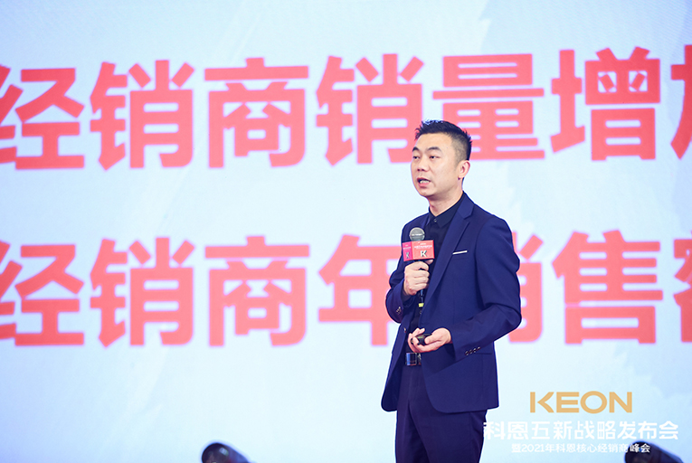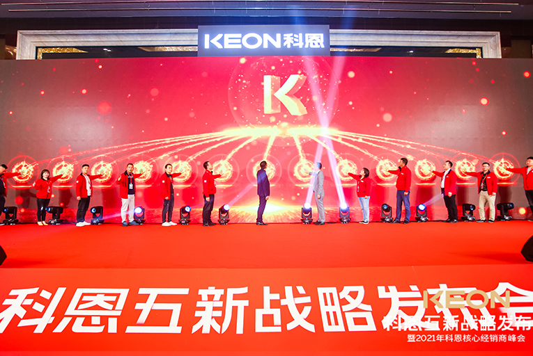 一場(chǎng)震撼全場(chǎng)的沙畫表演后正式會(huì)議正式開(kāi)始,科恩電器董事長(zhǎng)俞鋒率先上臺(tái)致辭,首先對(duì)現(xiàn)場(chǎng)所有人表達(dá)了誠(chéng)摯的感謝。2021年科恩電器將乘風(fēng)破浪拉開(kāi)新帷幕,開(kāi)啟全新篇章。隨后,科恩電器營(yíng)銷總經(jīng)理趙漢斌發(fā)布“五新戰(zhàn)略”:新門店、新團(tuán)隊(duì)、新模式、新目標(biāo)、新未來(lái)!不忘初心,方得始終,一起開(kāi)創(chuàng)新時(shí)代、新征程!