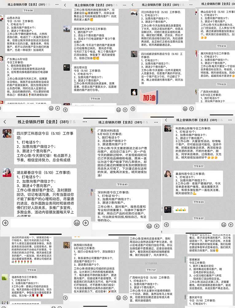 微信超級(jí)廠購會(huì),定計(jì)劃,定目標(biāo),提升學(xué)習(xí)力,增強(qiáng)執(zhí)行力,凝聚戰(zhàn)斗力,總部操盤賦能終端,助力于門店市場運(yùn)營,帶領(lǐng)科恩家人一路摸高,高效打造有溫度有實(shí)體感的戰(zhàn)斗集體。