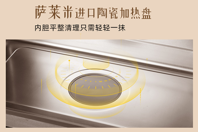另外,集成灶十大品牌、廚電行業十大品牌科恩ZK01蒸烤一體機采用無縫焊接工藝內膽,洗凈不費勁,百刮不花,無縫隙一抹即凈,底部采用進口“薩萊米”陶瓷加熱盤,內膽平整只需輕輕一抹就能潔凈。