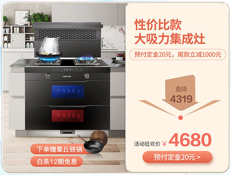 集成灶十大品牌、廚電行業十大品牌科恩集成灶雙11購物狂歡節火熱進行中,鉅惠多重禮,助力您的愿望一一實現!