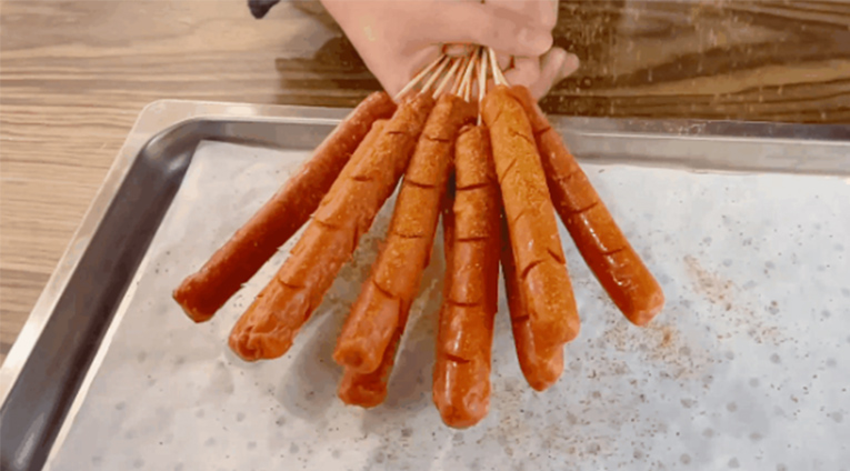 02給香腸表面均勻刷上一層油