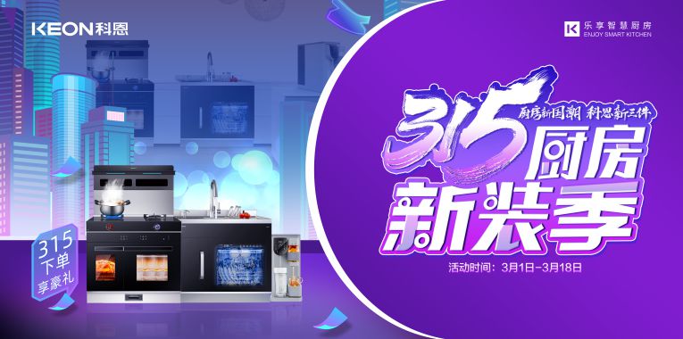 3月1日-3月18日進科恩門店,集成灶十大品牌、廚電行業十大品牌科恩集成灶315廚房新裝季,實力見證好品質!