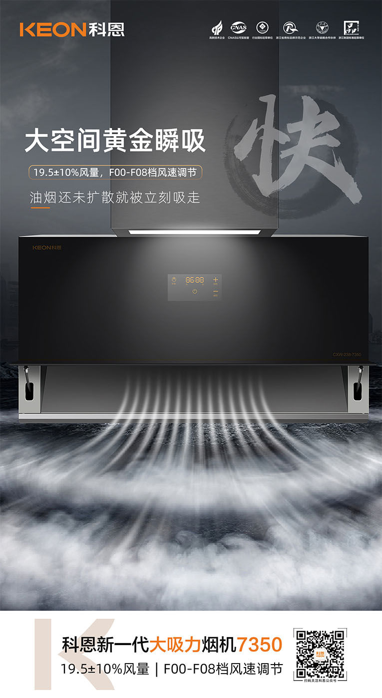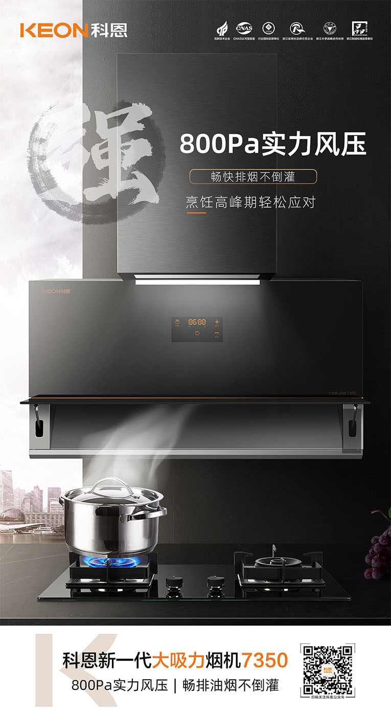 集成灶十大品牌、廚電行業(yè)十大品牌科恩新一代大吸力煙機7350即將上市,今天就跟隨小編一起,解鎖7350煙機獨特魅力。