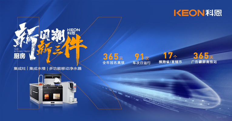 在品牌建設上,科恩集成灶煥新布局品牌建設,構燴“廚房新國潮科恩新三件”品牌理念,傳遞廚房幸福感。另外,科恩更是斥資800萬,“科恩號”高鐵全年冠名,橫跨17個省/直轄市,日運行91車次,全年飛馳于全國各地,科恩品牌之聲響徹大江南北,實現億次+曝光。