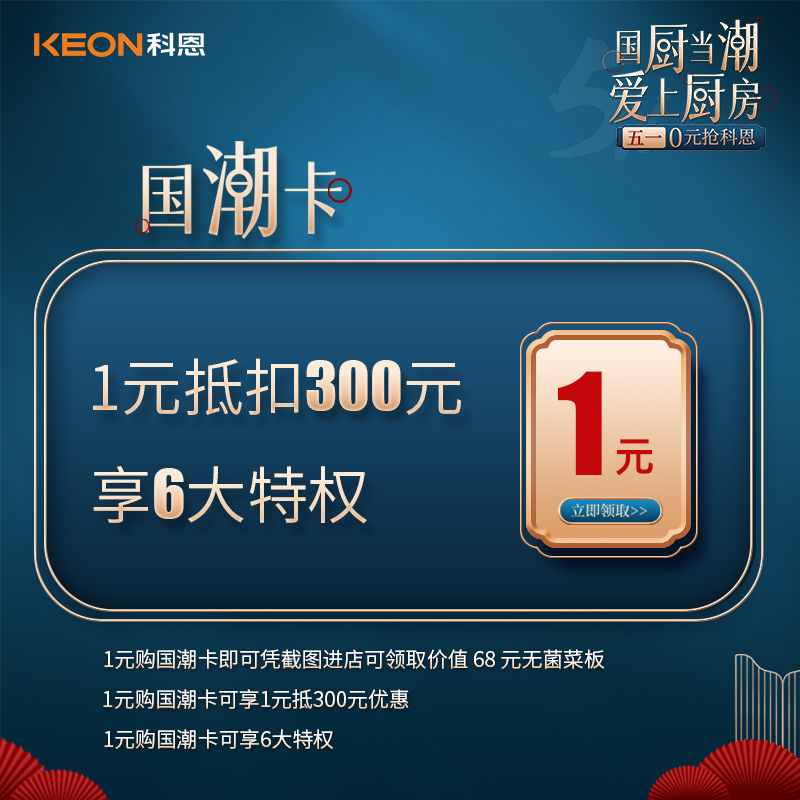 1元國潮卡,限時搶購!購買1元國潮卡,憑截圖即可進店領取價值68元無菌菜板,1元抵300元優惠,同時,可享六大特權!沒有中獎的朋友們也不用氣餒,我們的第二輪直播大抽獎也在緊鑼密鼓的準備中,5月9日晚上7點,提前準備好1元錢購買國潮卡,進入直播間,下個幸運兒就是你!