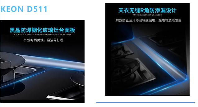 灶臺面板采用黑晶防爆鋼化玻璃,三重防護(hù)臺面:鋼化玻璃+防爆膜+防爆鋼板,防爆防燙更易打理,搭配熱電偶熄火保護(hù)裝置,遇意外快速切斷氣源電源。