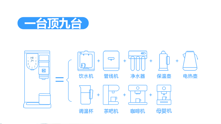 科恩多功能移動式凈水器,憑借UV殺菌、凈廢分離、茶吧泡茶功能,完全替代了廚下機、熱水壺、保溫壺、飲水機、管線機等設備,以無空間、無水源限制的優(yōu)勢,徹底顛覆了傳統(tǒng)凈水器諸多局限,從根本上滿足用戶對不同環(huán)境的飲水需求,產(chǎn)品還通過了中國CMA106項水質(zhì)標準檢測,水質(zhì)達到了直接飲用標準!