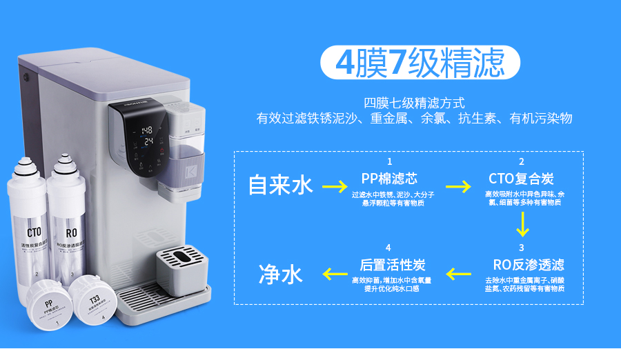 采用大品牌美國陶氏進口RO反滲透膜,過濾精度<0.0001微米,相當于1/20萬的頭發(fā)絲,四膜七級精濾,有效去除水中的鐵銹泥沙、重金屬、余氯、抗生素、有機污染物等有害物質(zhì),內(nèi)置的UV殺菌系統(tǒng),可有效防止凈水箱的二次污染,凈水直飲更安心!咱住的雖然是老小區(qū),但用的水呀,比誰都不差!