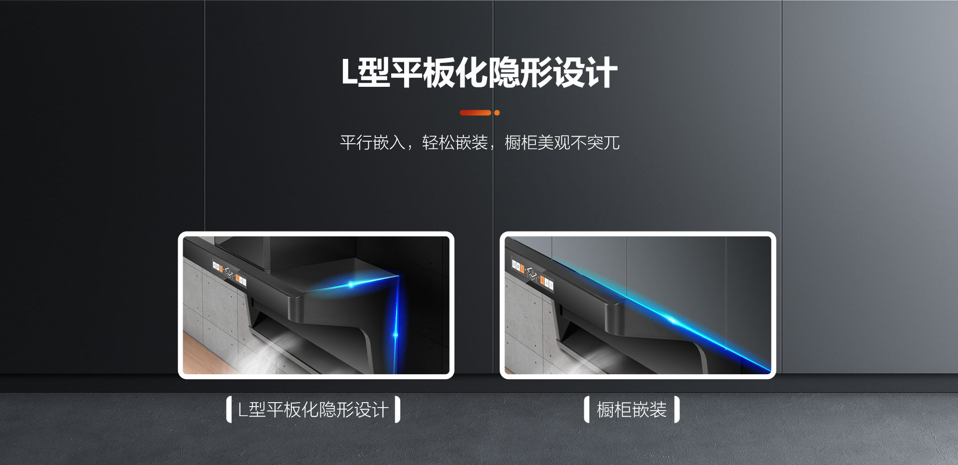 ◆L型平板化隱形設計,與櫥柜完美結合,不僅能釋放更多的廚房烹飪空間,還解決了煙機“碰頭”的難點,人性化的設計更符合中國式家庭廚房的使用。