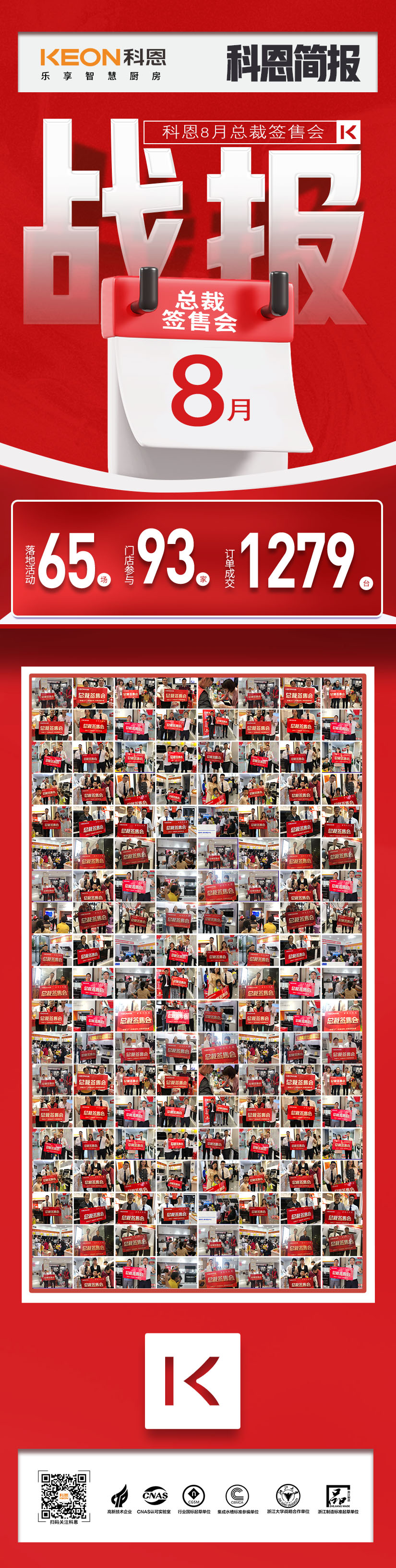 八月火熱收官,科恩集成灶聚焦市場,賦能終端,落地幫扶,力促門店軟實力提質增效,堅定實施“賦能提升,決勝終端”戰略部署,八月優異業績盡入囊中,在這個專屬科恩的勝利時刻,你我一同見證!