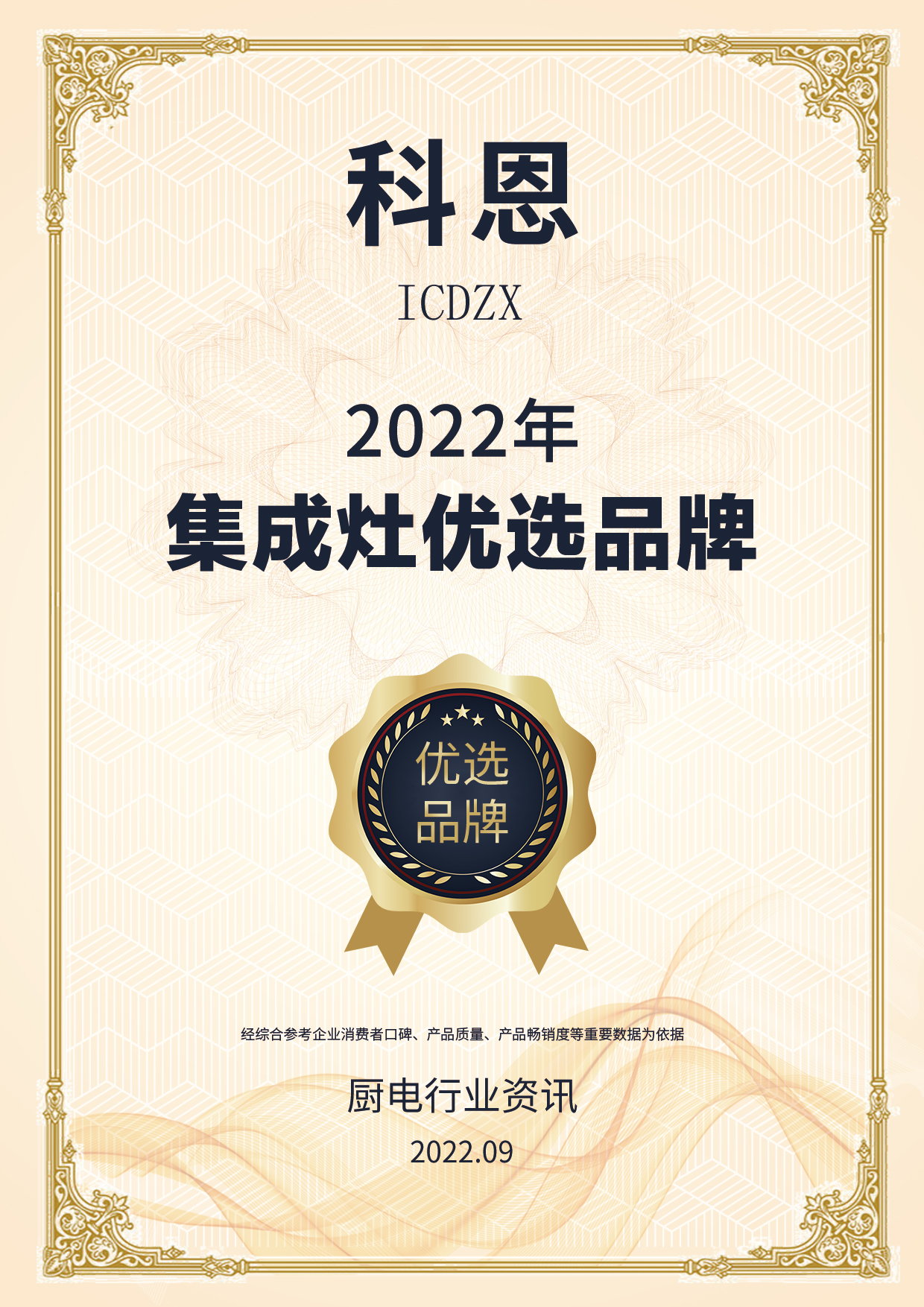 喜報!喜報!喜報!浙江科恩電器有限公司榮獲2022年度質量月廚電行業|集成灶行業優選品牌兩項殊榮!