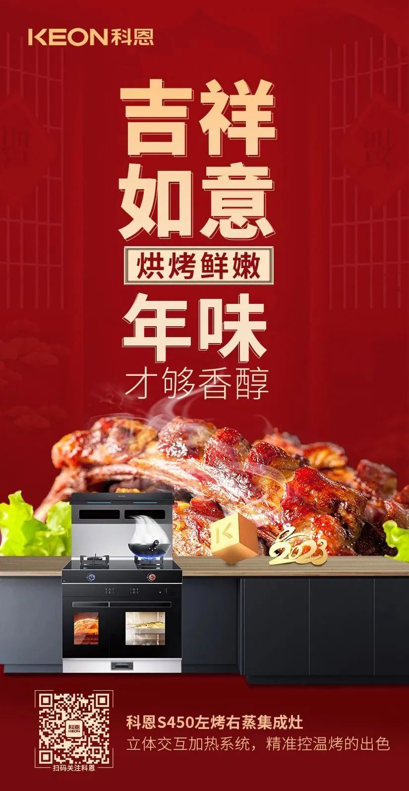除夕,歲末的最后一天夜晚。在這辭舊迎新的團圓之夜,一定要有一頓闔家歡樂,其樂融融圍坐一席的團圓年夜飯才算圓滿,TA是每年新年前的重頭戲,不但豐富多彩,而且還講究很多寓意,今夜,科恩集成灶為您和家人奉上一桌寓意滿滿的年夜飯,祝您和家人在新的一年瑞兔呈祥,兔來運轉,兔年大吉,好運連連!