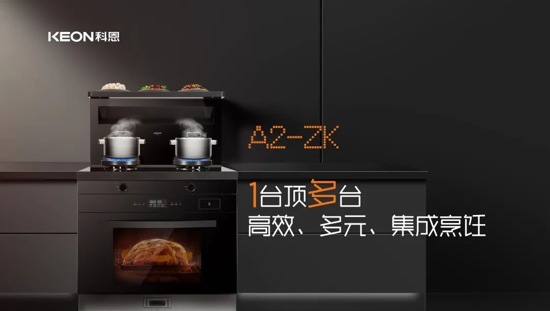 科恩A2蒸烤一體集成灶,集油煙機(jī)、燃?xì)庠?、電蒸箱、電烤箱、解凍機(jī)、發(fā)酵機(jī)、烘干機(jī)、保溫箱,8臺(tái)一體。一平方就籠絡(luò)了整個(gè)廚房電器,大幅度節(jié)省了廚房空間,小廚房也能有大作為。