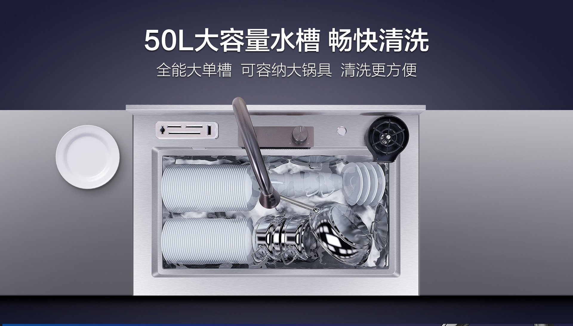 50L大單槽讓清洗更順暢。