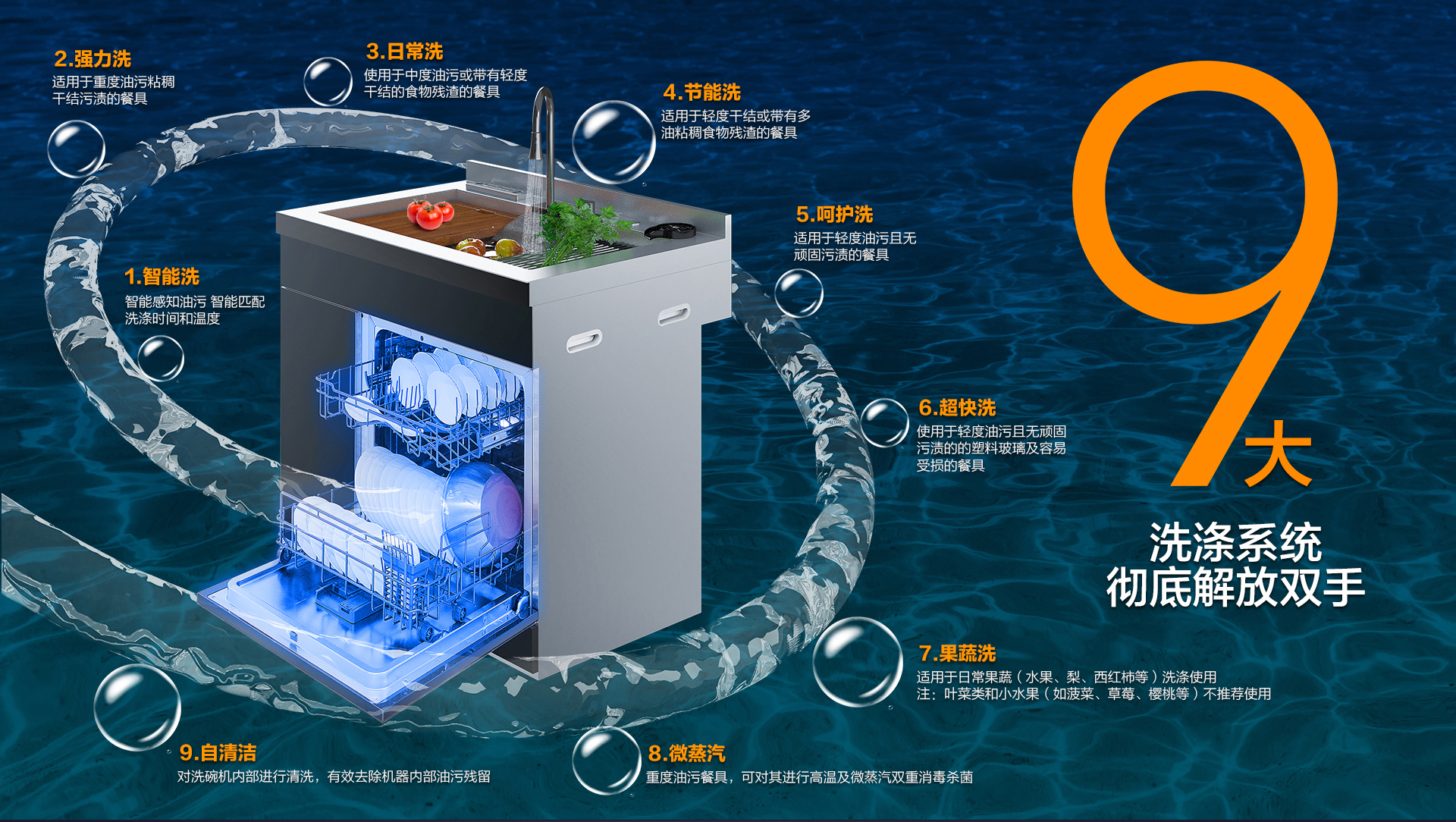 9大洗滌系統(tǒng),可滿足用戶不同洗滌需求。