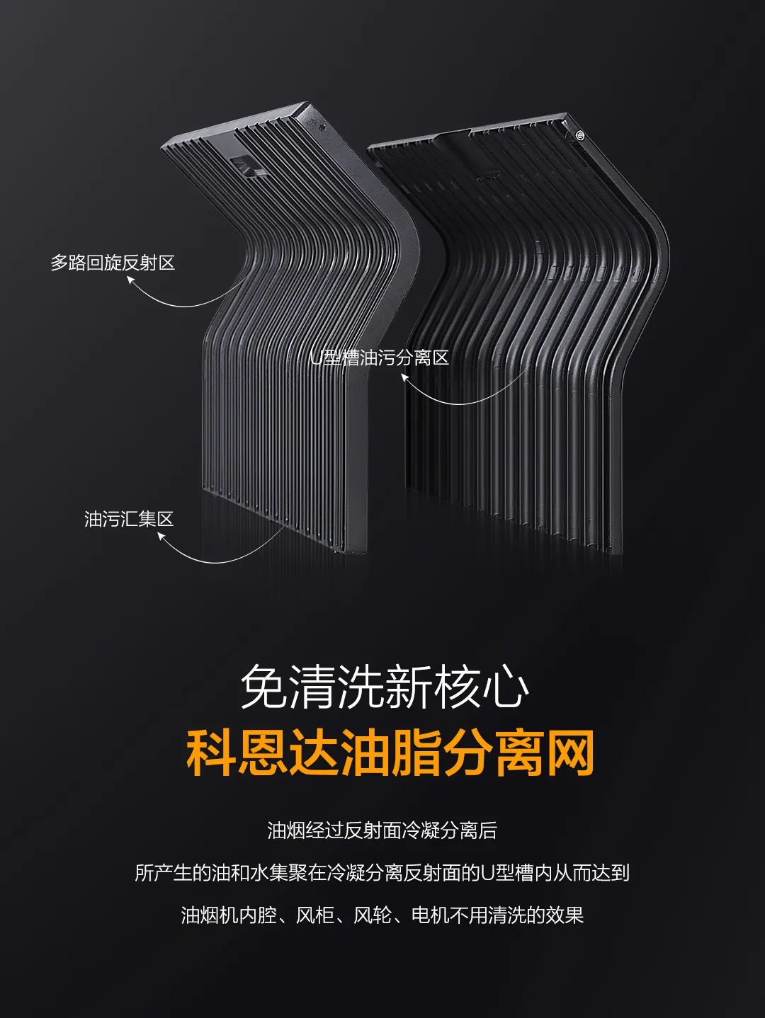 科恩達油脂分離網采用易潔太空壓鑄鋁材,相較于其他材質,更耐高溫、更易潔。