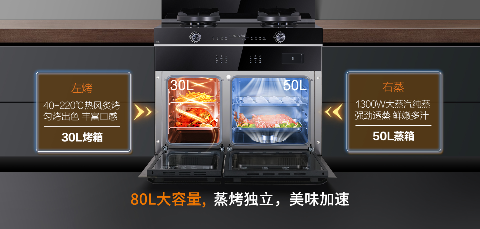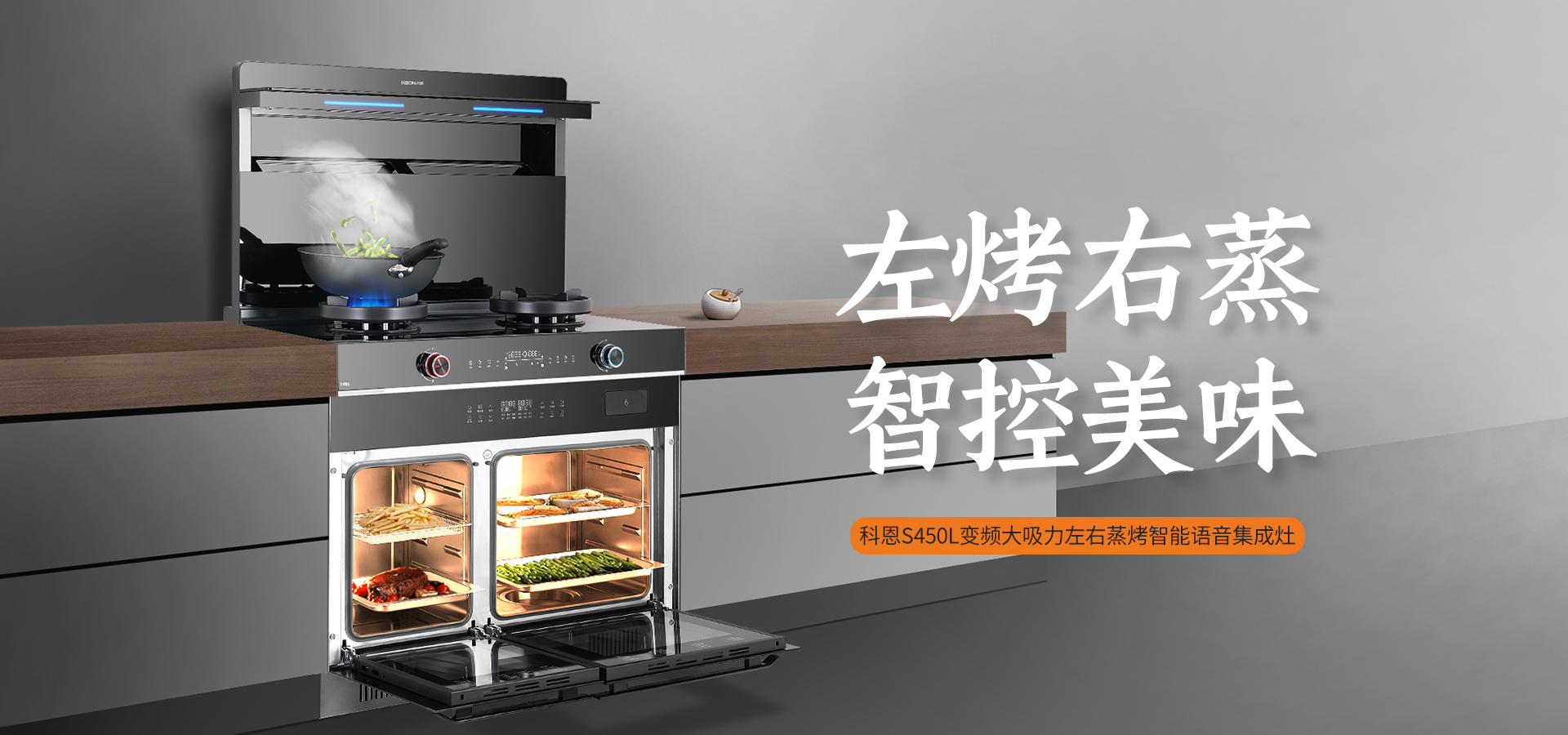 科恩S450L蒸烤獨立集成灶,讓年輕人輕松掌握科技廚房。