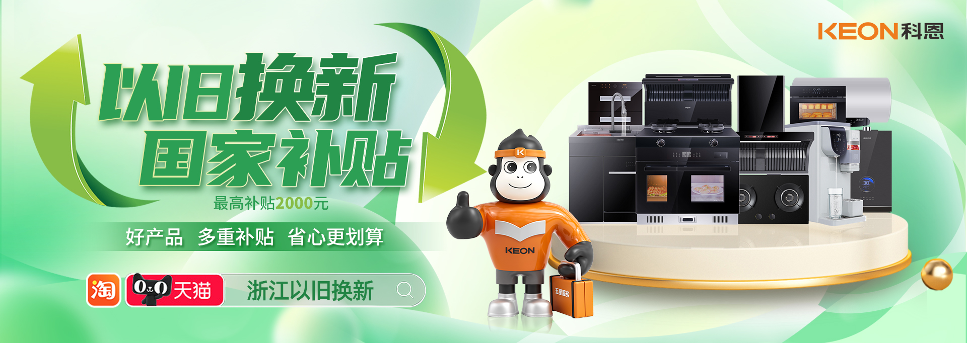 為落實政府消費品以舊換新工作部署,進一步擴大廚具產(chǎn)品消費規(guī)模,切實提升居民生活品質(zhì)。科恩積極配合政府政策,開啟線上淘寶平臺換新補貼活動!