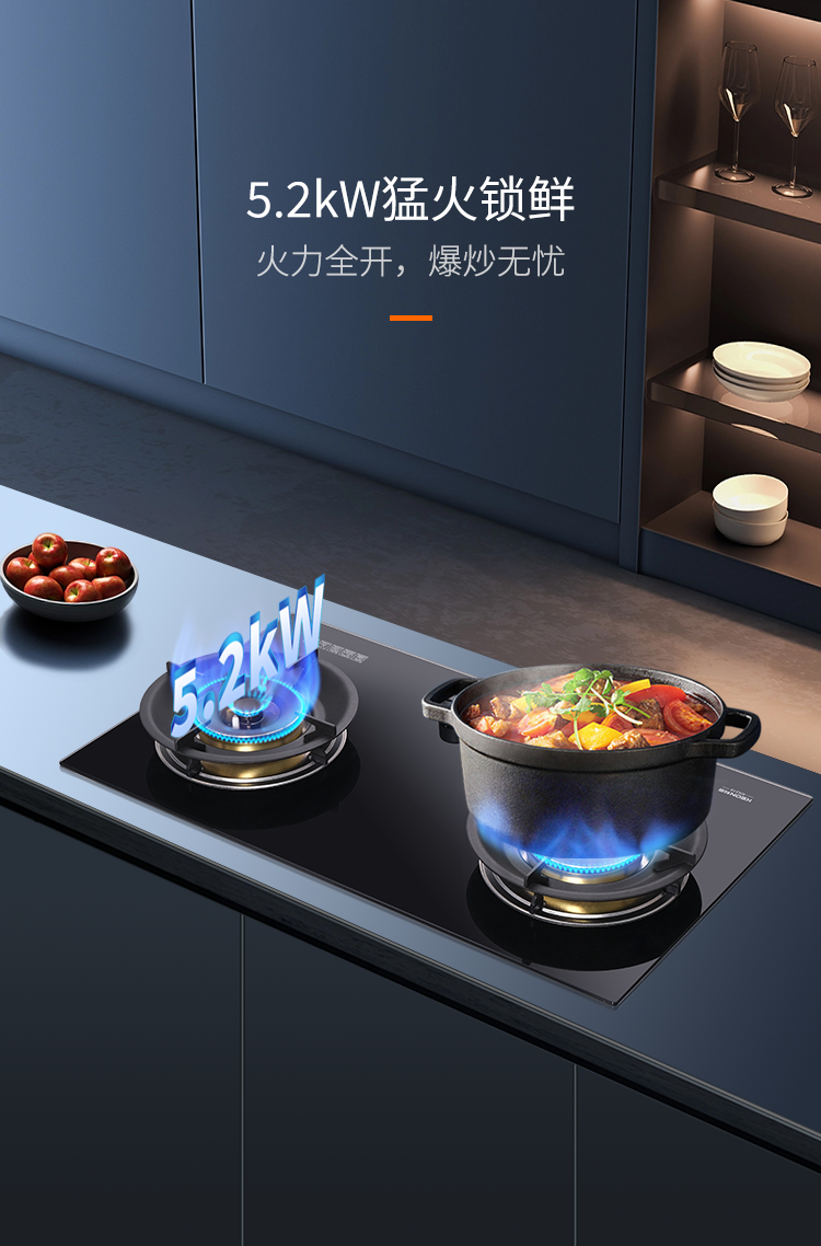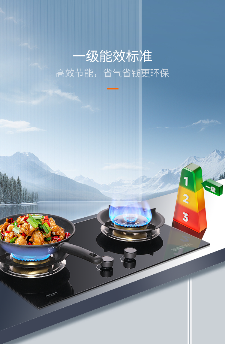 火力雙修,掌控自如。5.2kW猛火暴擊,烈焰瞬間穿透食材鎖鮮香;170°無極調(diào)火旋鈕,從文火煨高湯到全開爆炒,指尖微轉(zhuǎn)即達理想火候;聚能環(huán)設計防風聚熱,火蓋可拆卸讓清潔更方便,KN310灶具解鎖烹飪新境界。安全智能,省心之選。不銹鋼爐頭耐高溫耐腐蝕,意外熄火自動斷氣,搭載按壓式童鎖旋鈕,守護全家人的健康安全。一級能效,綠色主張?zhí)麓芍Ъ芊€(wěn)托鍋具,讓烹飪變成安心的儀式。