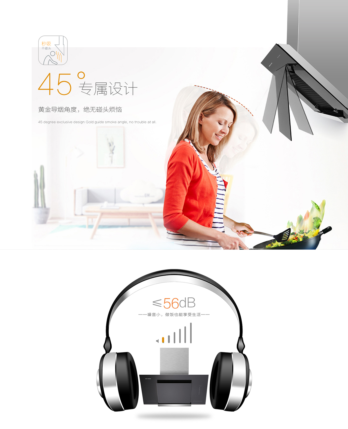- 45°專屬設(shè)計,黃金導煙角度,無碰頭煩惱。