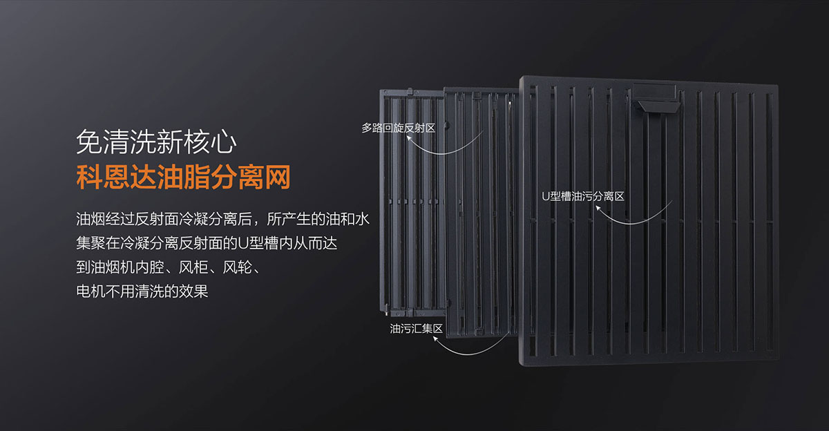 科恩達(dá)油脂分離網(wǎng)便捷拆裝設(shè)計(jì),表面易潔工藝,拆洗簡單