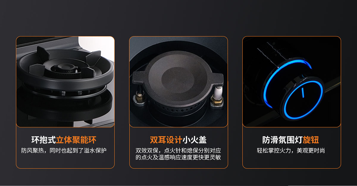 環抱式立體聚能環,防風聚熱,同時也起到了溢水保護