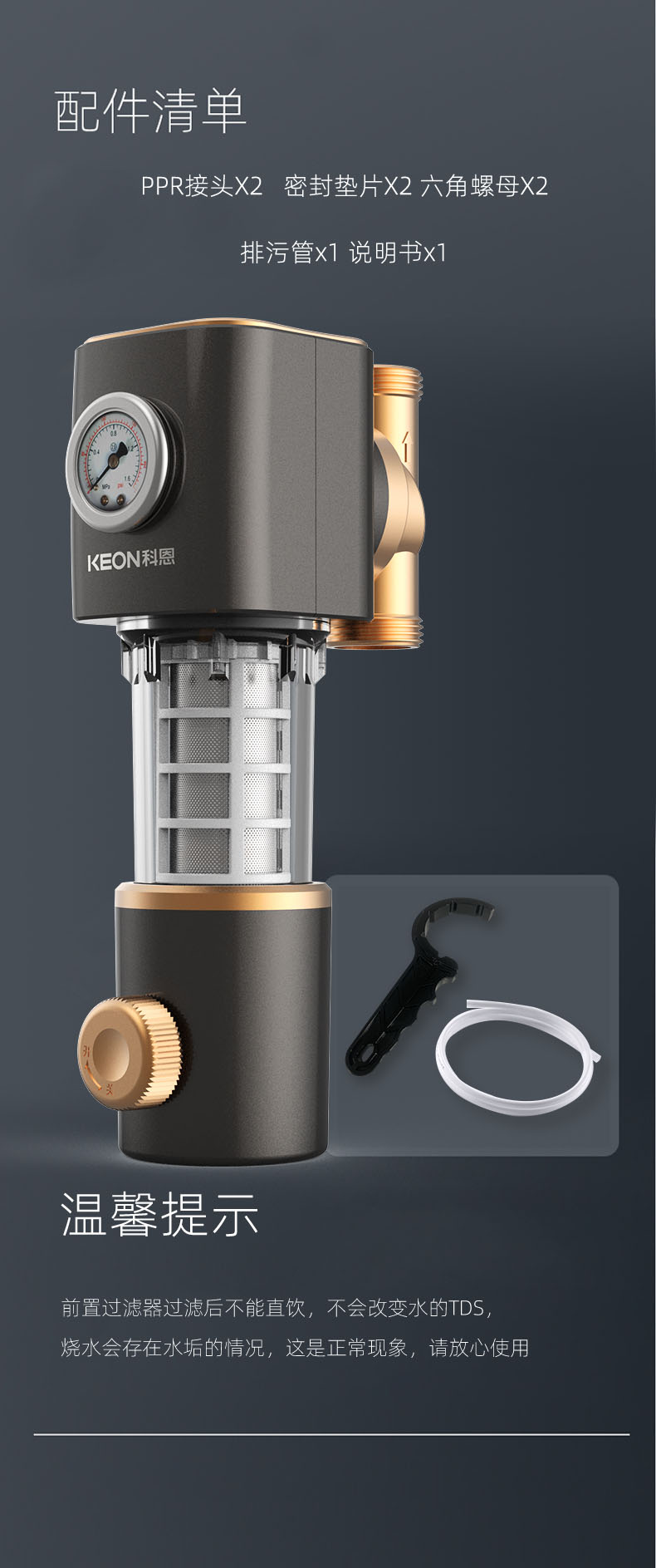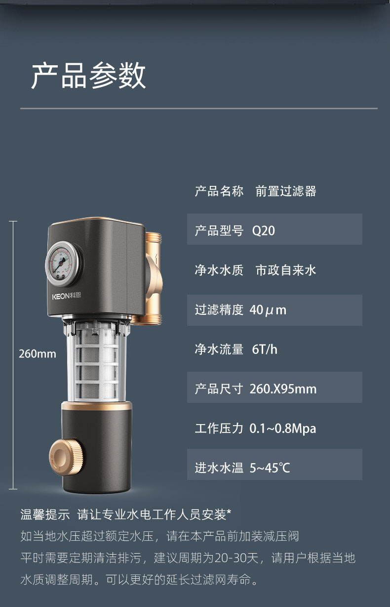 - 40μm過濾精度,精密不銹鋼濾網(wǎng),提升水質(zhì)