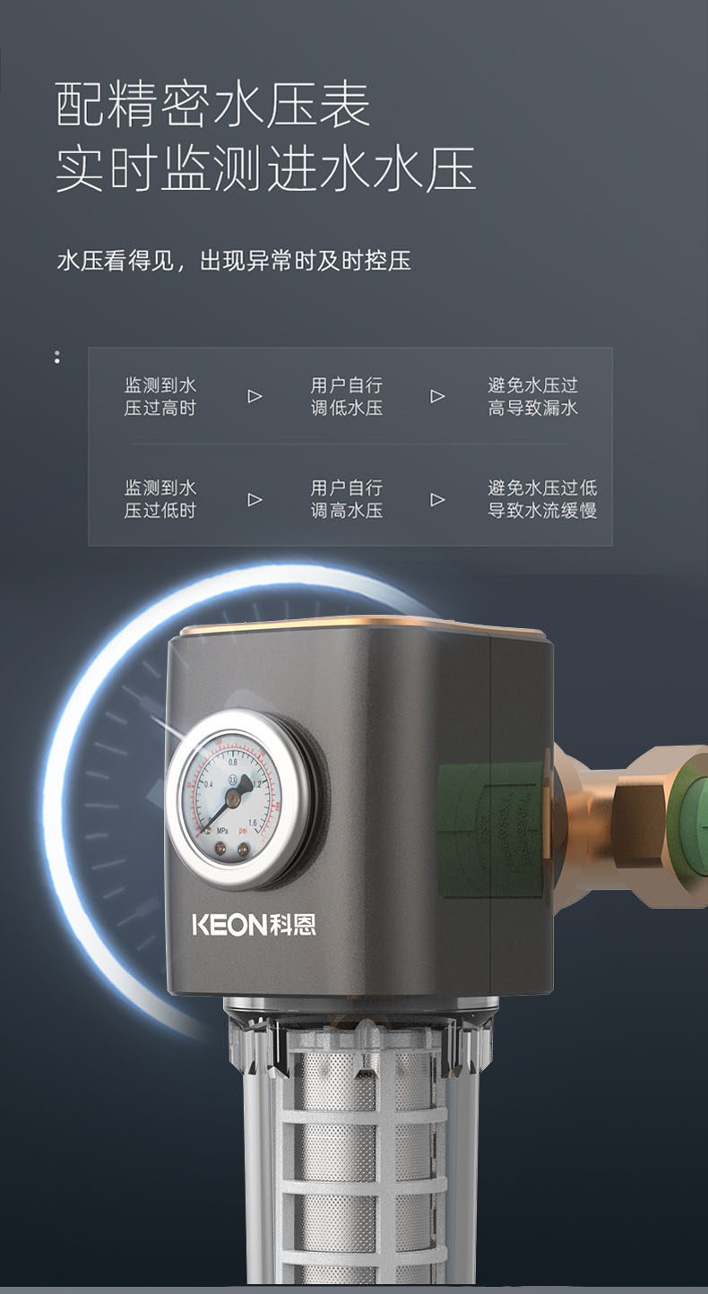 - 配精密水壓表,實時檢測進(jìn)水水壓