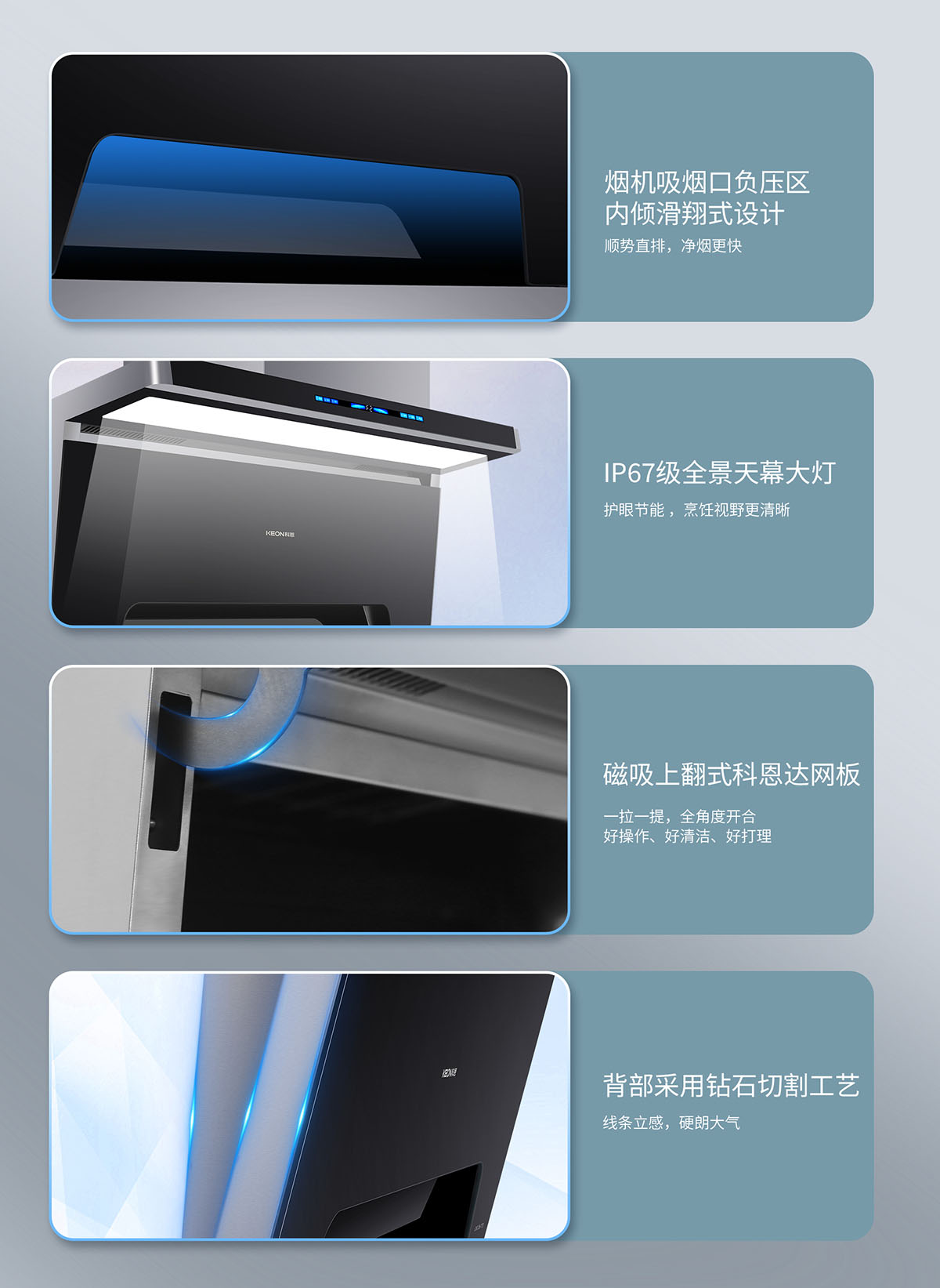 磁吸上翻式科恩達導煙板,清潔更便捷