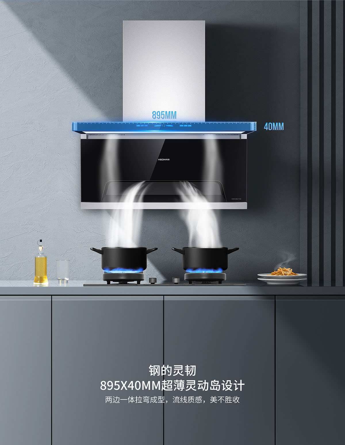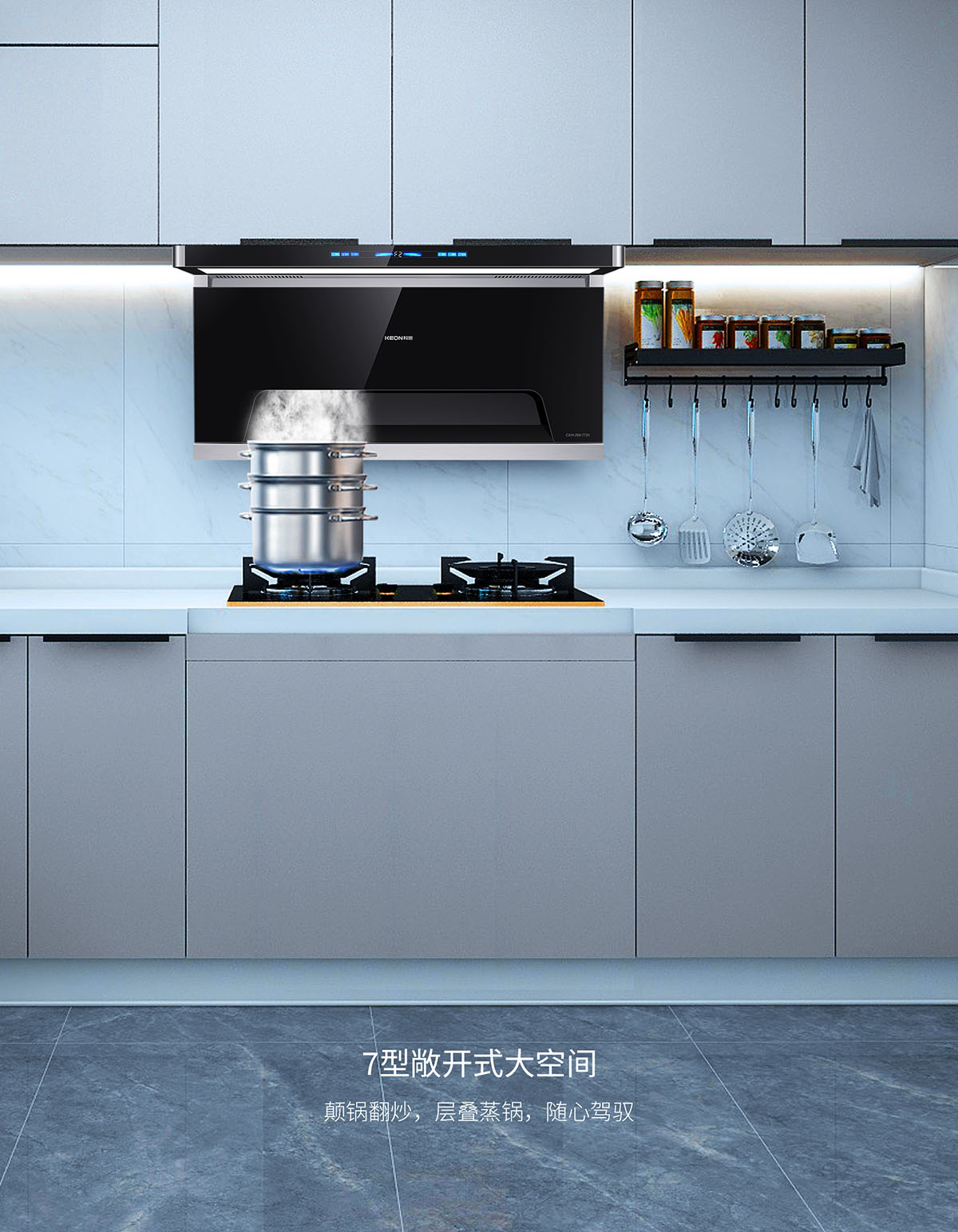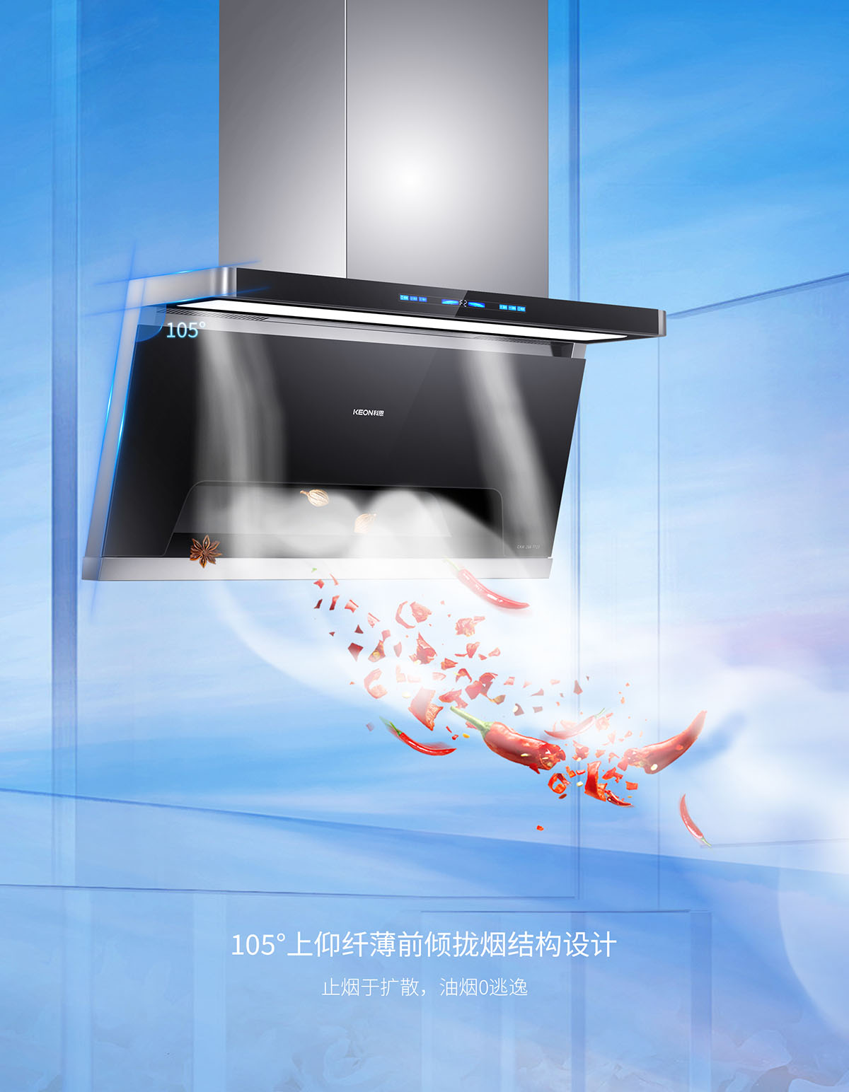 105°仰角攏煙設計,瘦身大空間,翻炒不碰頭