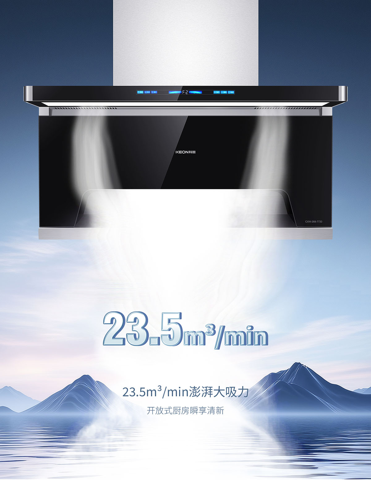 一鍵23.5m³/min爆炒大吸力,無懼重油爆炒