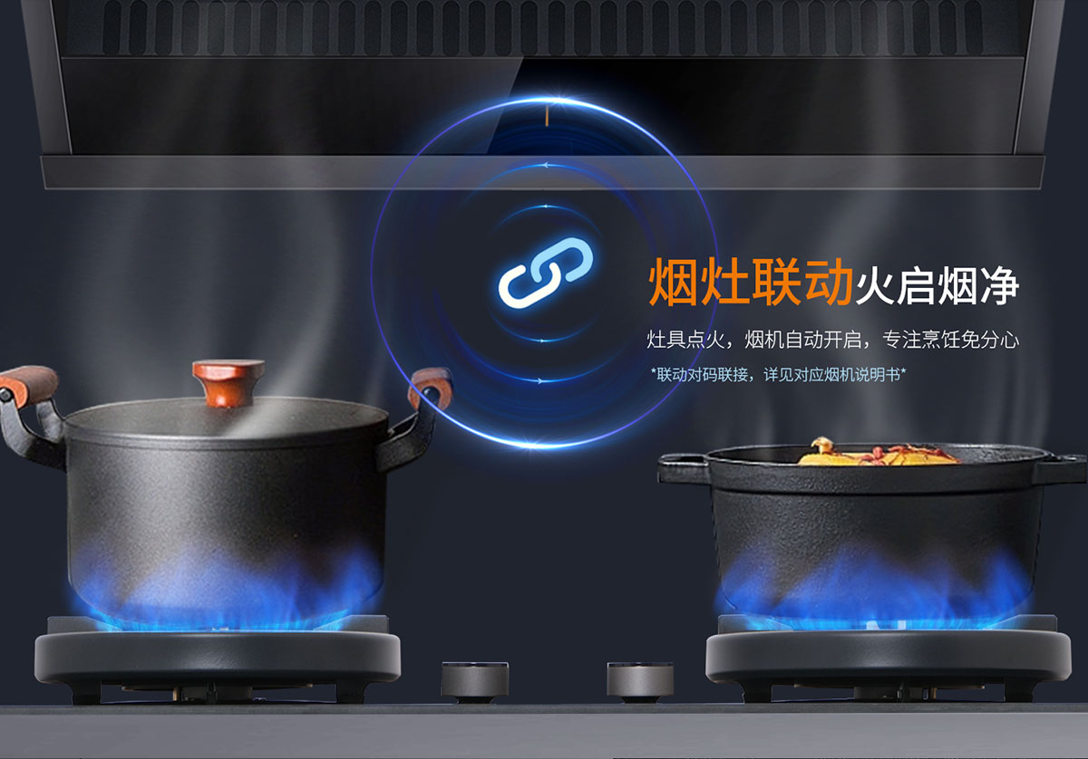 - 煙灶聯(lián)動(dòng),火啟煙凈,專注烹飪免分心