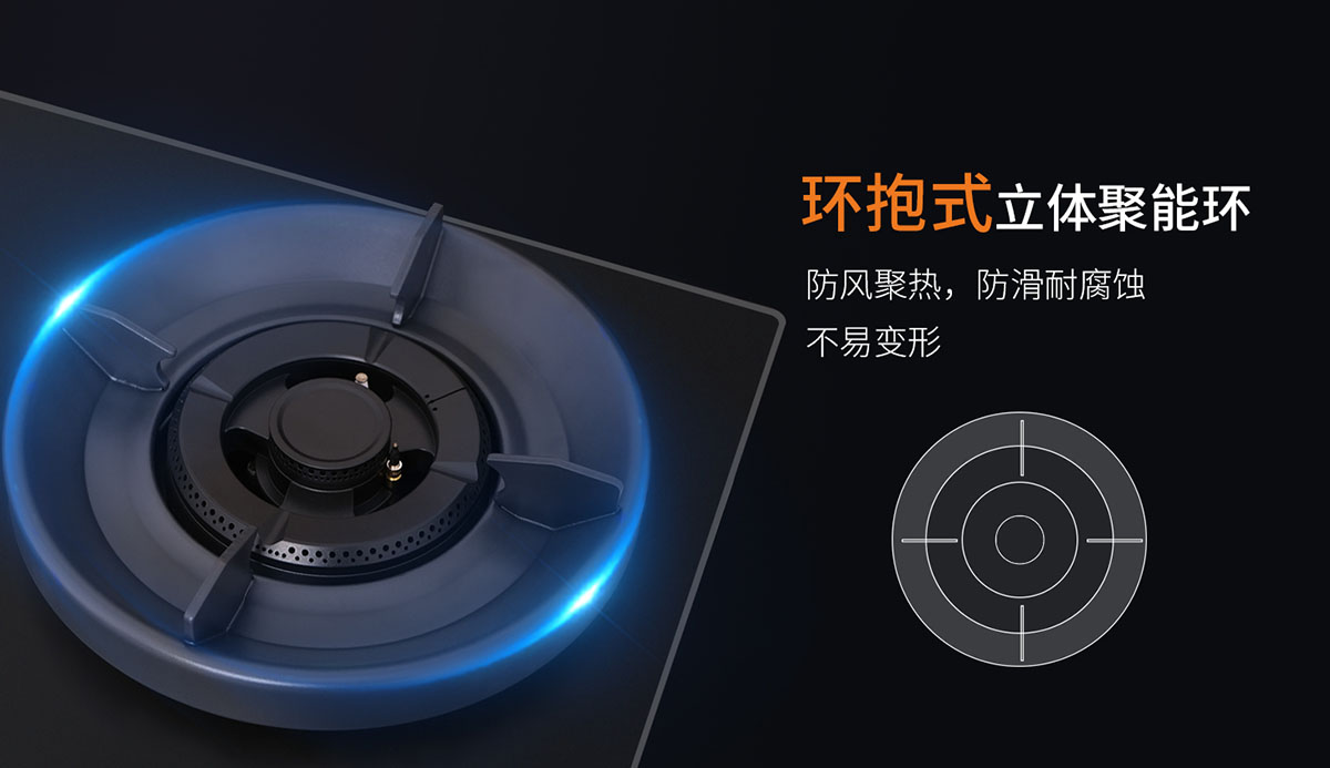 - 環(huán)抱式立體聚能環(huán),防風(fēng)聚熱,提升熱效